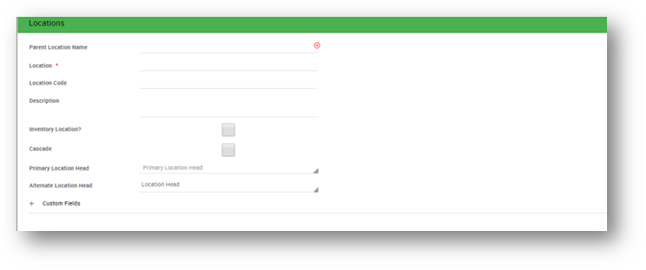 Parent Location Name | Locations created earlier are displayed in the drop down. You can add other locations under a single location in Parent > Child format | No |