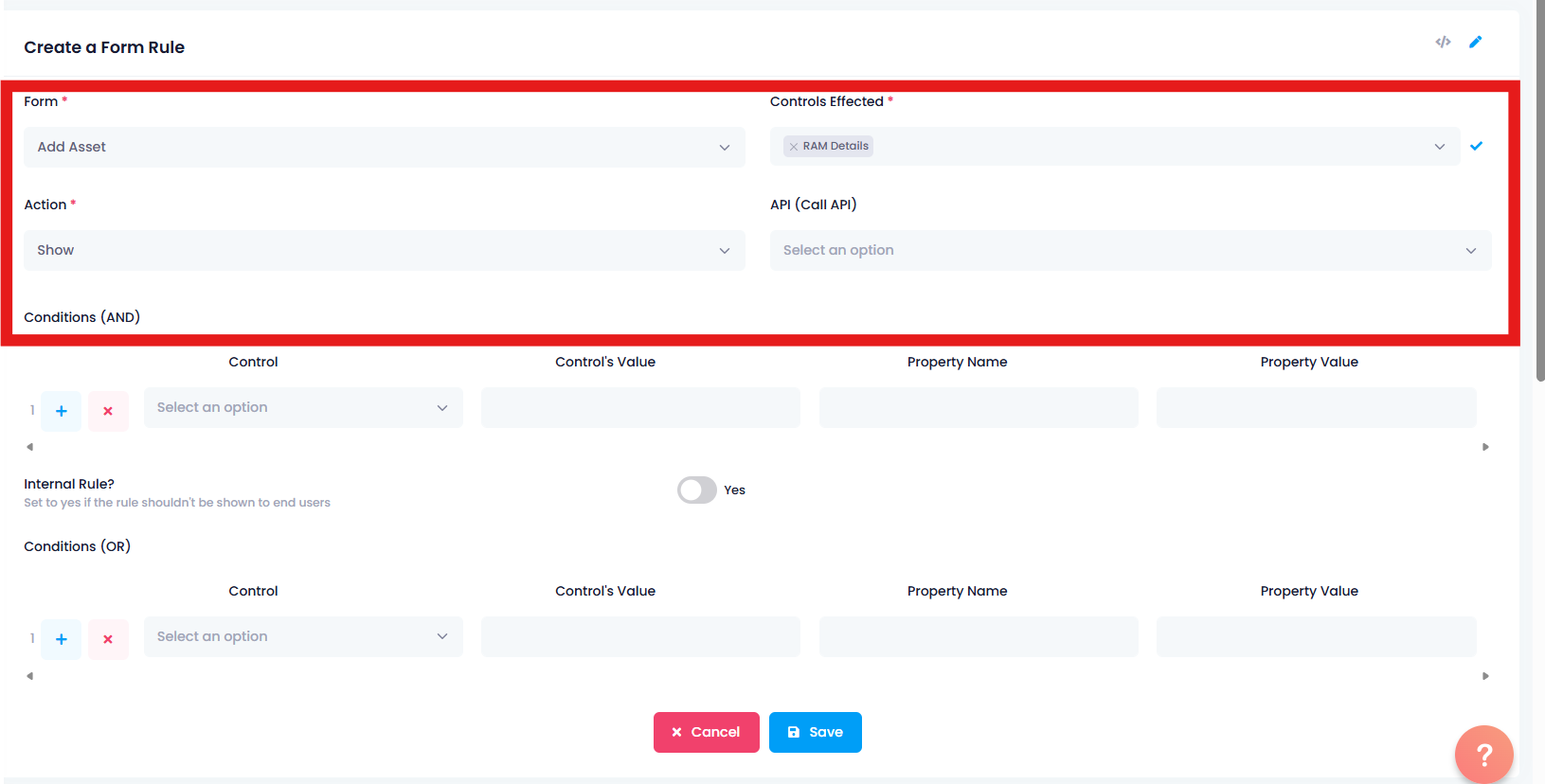 The Form Rule in Asset Infinity works uniformly across various modules.
