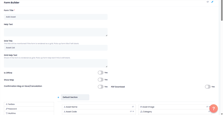 Asset Infinity provides a powerful Form Builder tool that allows administrators to customize forms by adding new fields as per organizational requirements. One of the most frequently customized areas is the Add Asset Form, where you can add custom fields to capture asset-specific information.
