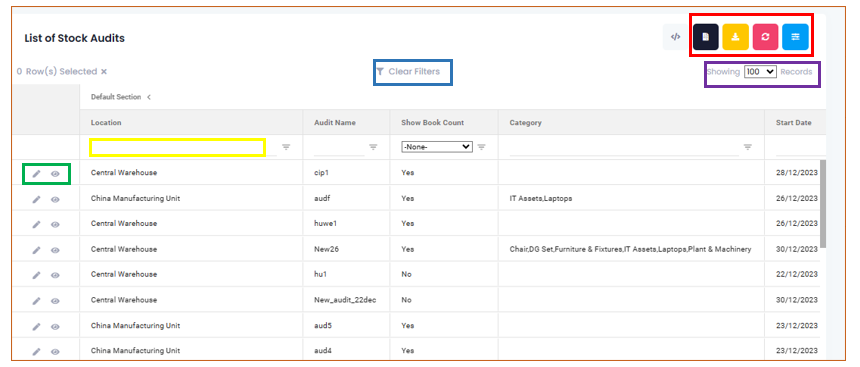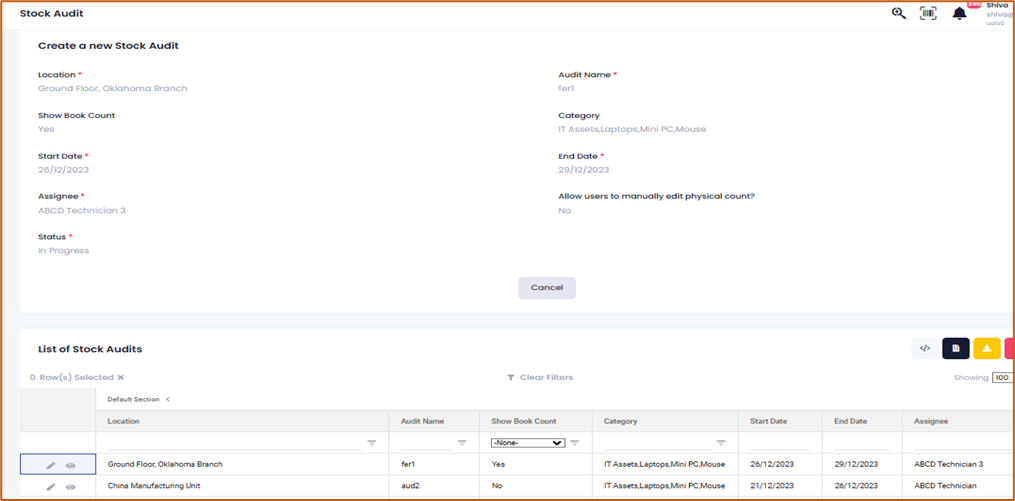We can make changes to an existing Stock Audit by clicking the edit/pencil icon of a Stock Audit next to the View icon.