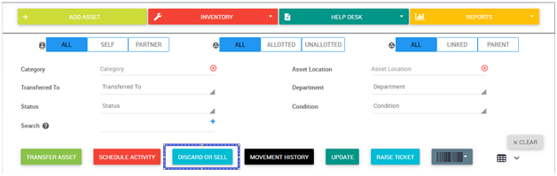 Discard or Scrap Assets Select Asset(s) > Discard or Sell Discard any lost item or scrap using the Discard or Sell option. Discarding or sending an asset to scrap populates it into a different report. Here the user can see the reason or amount ...