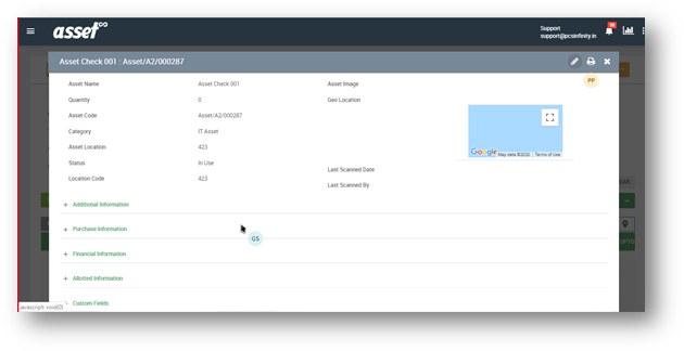The asset form opens in an editable format. Edit the required fields and click on the Save button to update asset data.